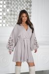 Головний акцент – розкішні об’ємні рукави, які створюють ефектний силует. Завдяки манжету рукав красиво формується, а виразна вишивка у вигляді гілочок бавовни робить кожен рух ніжним і естетичним.