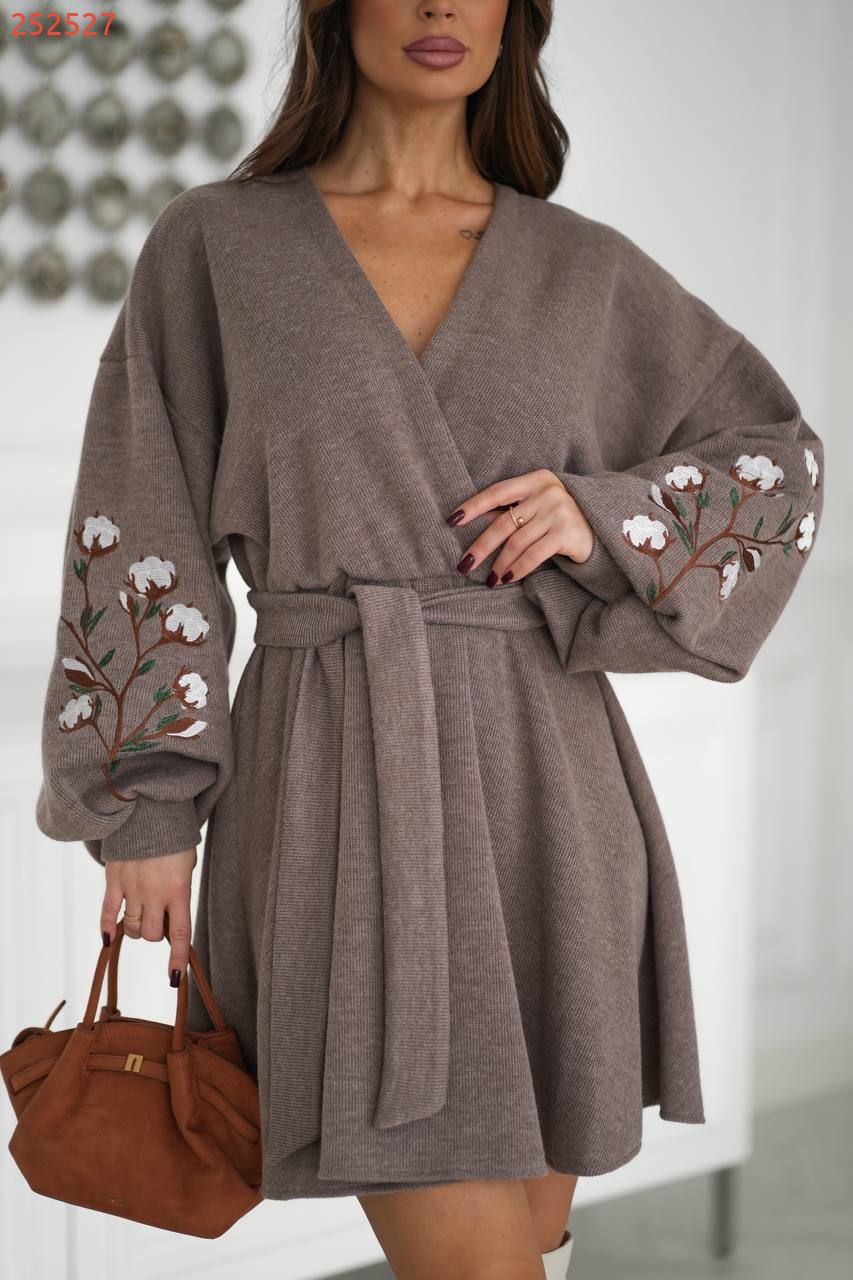Головний акцент – розкішні об’ємні рукави, які створюють ефектний силует. Завдяки манжету рукав красиво формується, а виразна вишивка у вигляді гілочок бавовни робить кожен рух ніжним і естетичним.