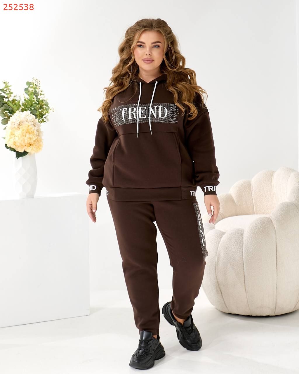 Будь завжди в «Тренді». Худі Oversize з капюшоном та яскравим акцентом: принт TREND з мерехтливими стразами/блиском (видно на фото!) + Джогери з м'якої тринитки на флісі!