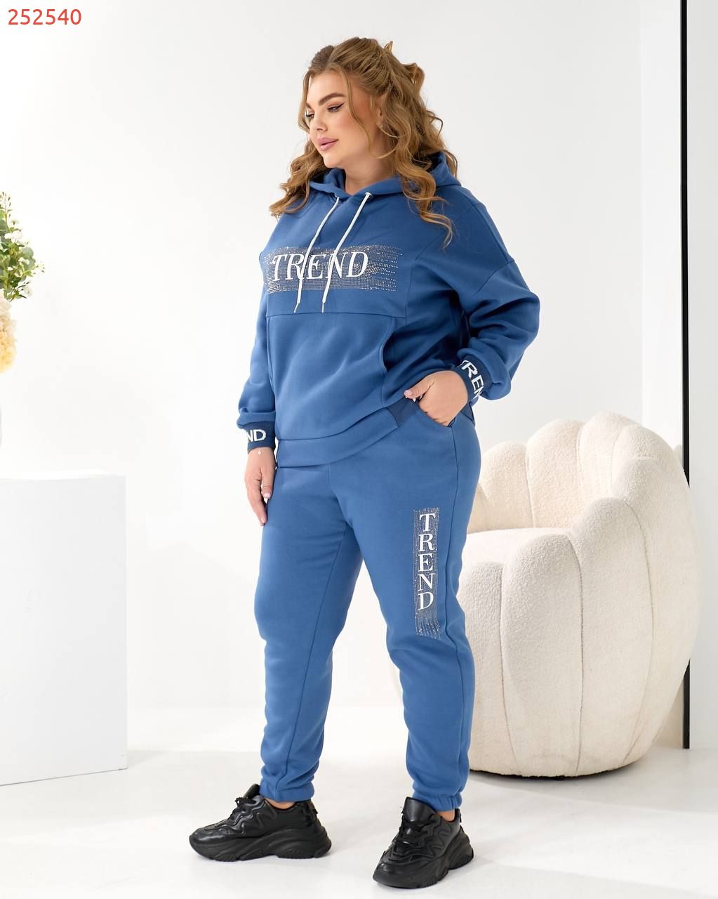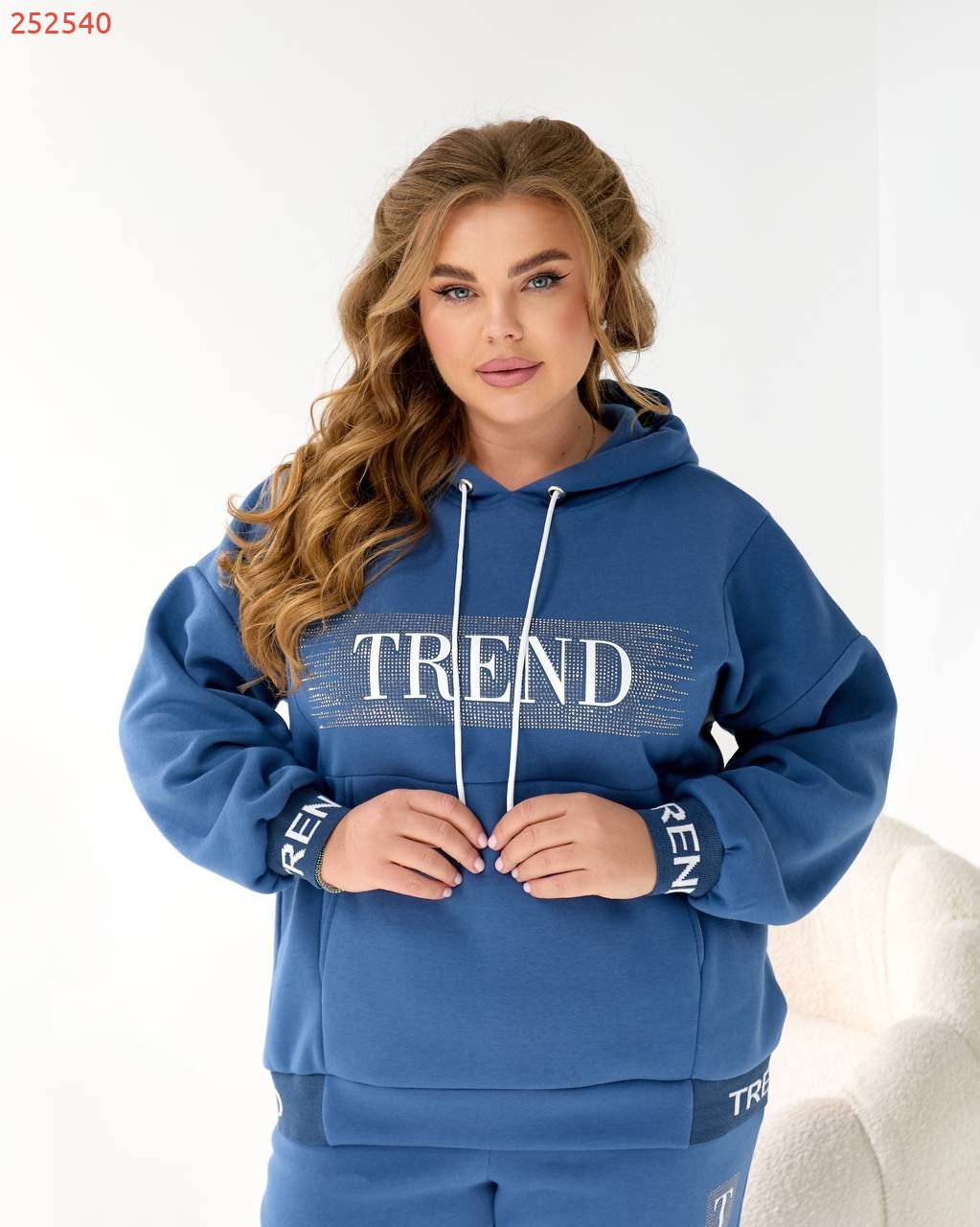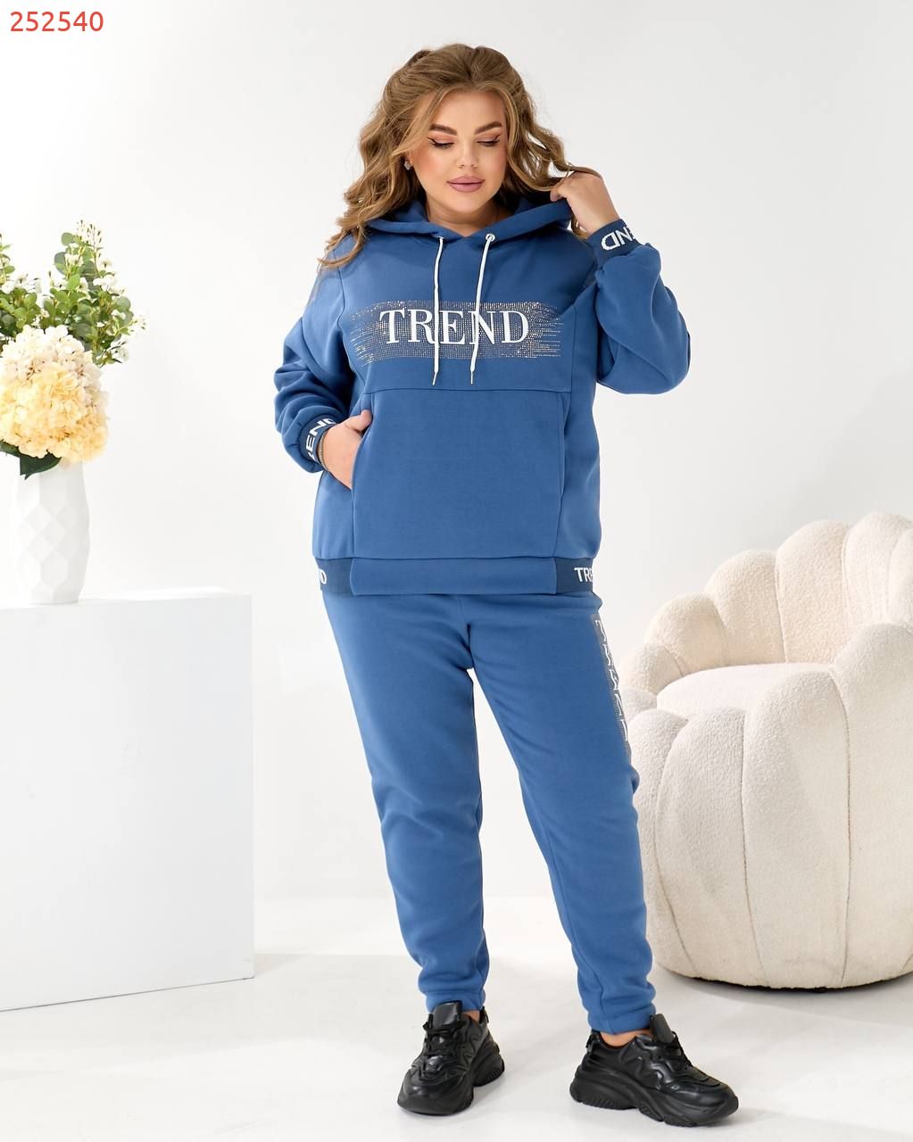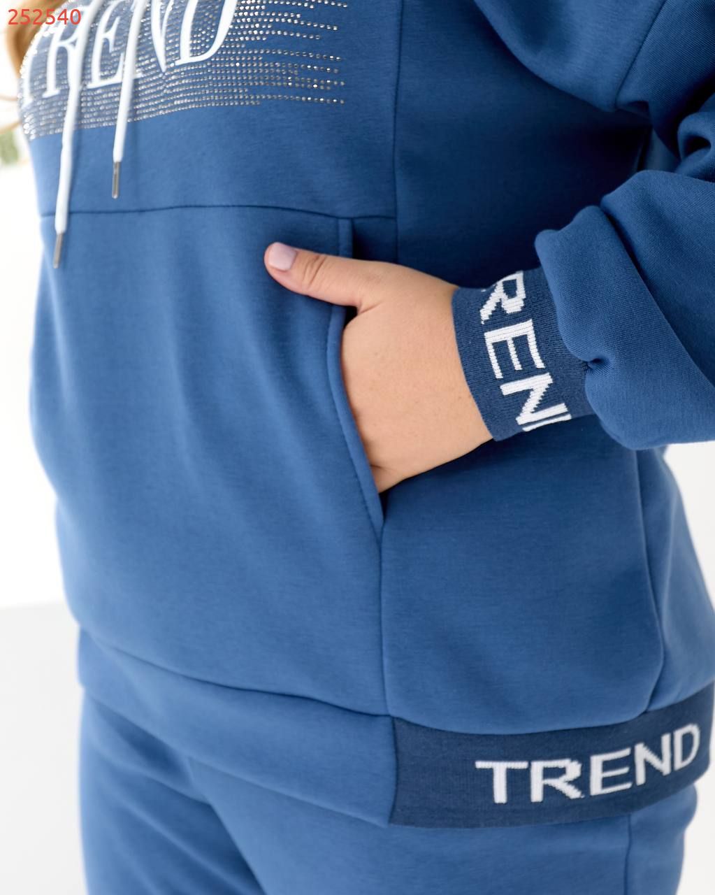 Будь завжди в «Тренді». Худі Oversize з капюшоном та яскравим акцентом: принт TREND з мерехтливими стразами/блиском (видно на фото!) + Джогери з м'якої тринитки на флісі!