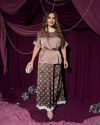 Спідниця з неповторним принтом вирізняється стильним кроєм та витонченою мереживною обробкою по низу – справжній акцент жіночності. Гармонійне поєднання фактур і кольорів робить костюм ідеальним вибором для урочистостей, фотосесій та особливих подій.