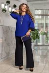 Жіночий трендовий костюм, що складається з блузи та штанів. Блуза вільного силуету, виріз горловини округлий. Штани із завищеною талією, вільної форми, вигідно підкреслюють витонченість ніг та надають fashion нотці образу. Зручна в носінні тканина, гарна посадка по фігурі, універсальність і лаконічність моделі не залишать байдужою жодну жінку.