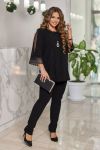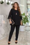 Цей святковий костюм двійка – легкий, зручний, стильний та нескінченно жіночний. Блузка виготовлена з вишуканої тканини з люрексом, яка м'яко переливається при кожному русі, створюючи благородне сяйво. Рукави особливого фасону додають легкості та руху образу, надаючи поряд відчуття легкості. Штани класичні. Завдяки фасону та крою, костюм візуально витягне силует, зробить фігуру стрункішою, підкреслить її переваги, приховає недоліки.
