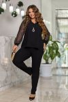 Брючний костюм, створений з особливою увагою до стилю та комфорту жінок. Блуза напівприлеглого силуету. Виріз горловини V-подібний, рукав трохи спущений. Виконаний з м'якого мережива, що надає додаткового шарму. Елегантний дизайн костюма подарує комфорт та впевненість у собі.