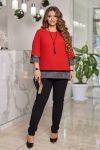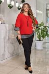 Жіночий комплект двійка, що складається з класичних штанів та блузки. Комплект виконаний з обробкою з сітки та тканини з паєтками. Блузка напівприлеглого силуету На рукавах є горизонтальні вставки з сітки, обрамлені деталями з паєток. Виріз горловини округлий.