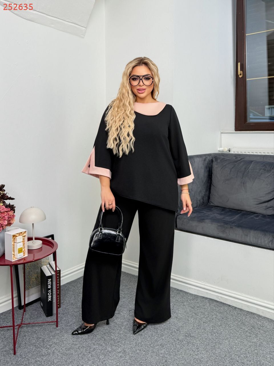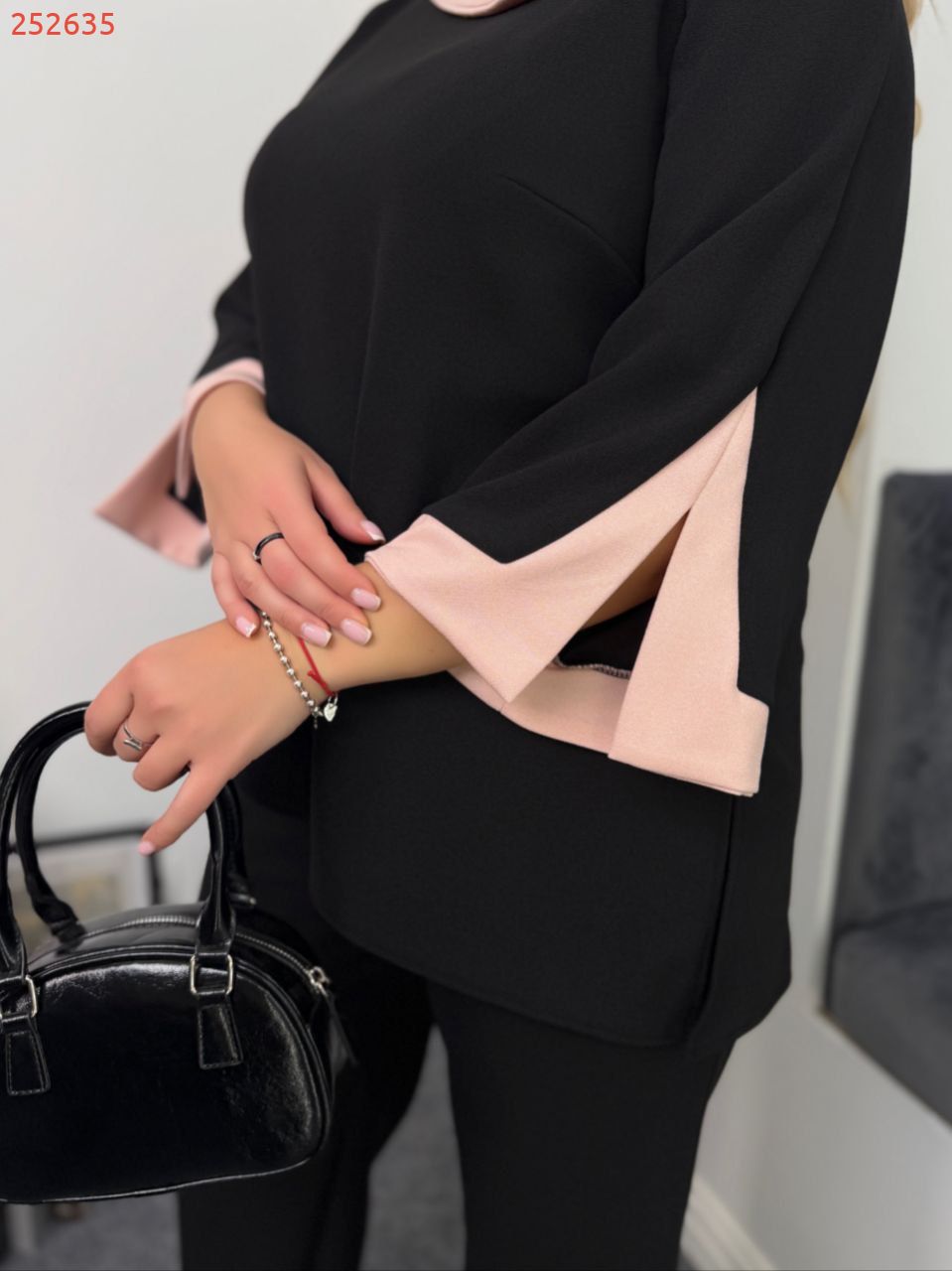 Комплект двійка, асиметрична кофтинка зі вставками пудрового кольору, з боків розрізи на рукавах та по низу кофти.