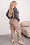 Ці брюки мають сучасний і комфортний крій, ідеальний для повсякденного носіння. Представлені в різних кольорах: графіт, чорний, шоколад і бежевий, що дозволяє легко поєднувати їх з іншими елементами гардеробу. Модель оснащена еластичним поясом позаду і ґудзиком спереду, що забезпечує зручність і комфорт при носінні. Брюки підходять як для повсякденних образів, так і для більш офіційних випадків, завдяки класичному фасону та стильному дизайну.