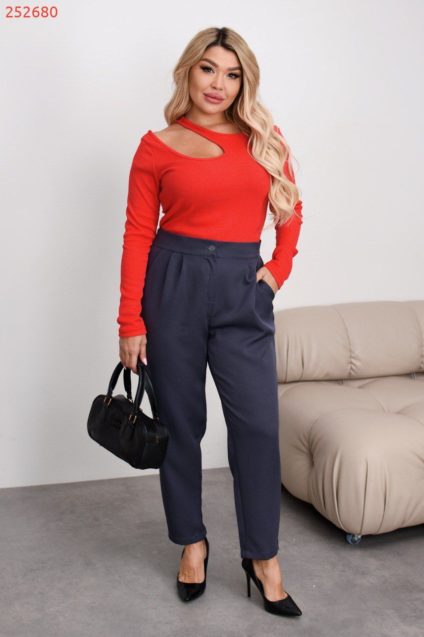 Ці брюки мають сучасний і комфортний крій, ідеальний для повсякденного носіння. Представлені в різних кольорах: графіт, чорний, шоколад і бежевий, що дозволяє легко поєднувати їх з іншими елементами гардеробу. Модель оснащена еластичним поясом позаду і ґудзиком спереду, що забезпечує зручність і комфорт при носінні. Брюки підходять як для повсякденних образів, так і для більш офіційних випадків, завдяки класичному фасону та стильному дизайну.