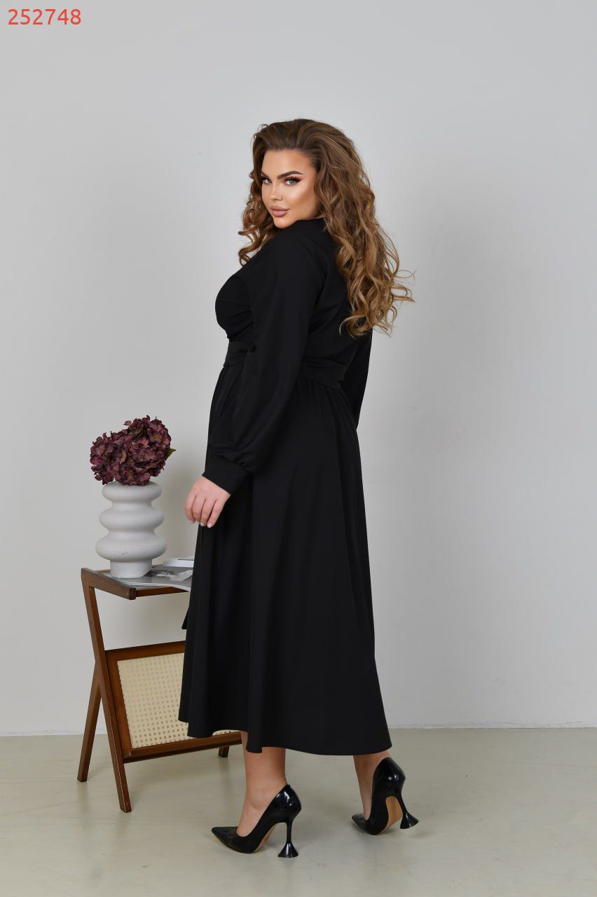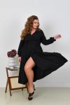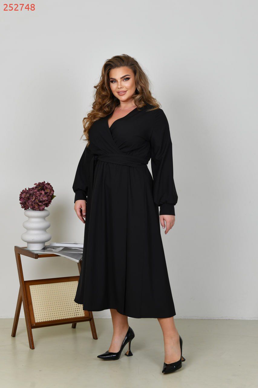 Неймовірно жіночна довга сукня у вечірньому стилі із софта (розтяжності немає). Ліф сукні та спідниця на запАх, по талії зібрана на резинку. Рукави довгі, на манжеті. Пояс із основної тканини в комплекті. Кишень, застібок немає.