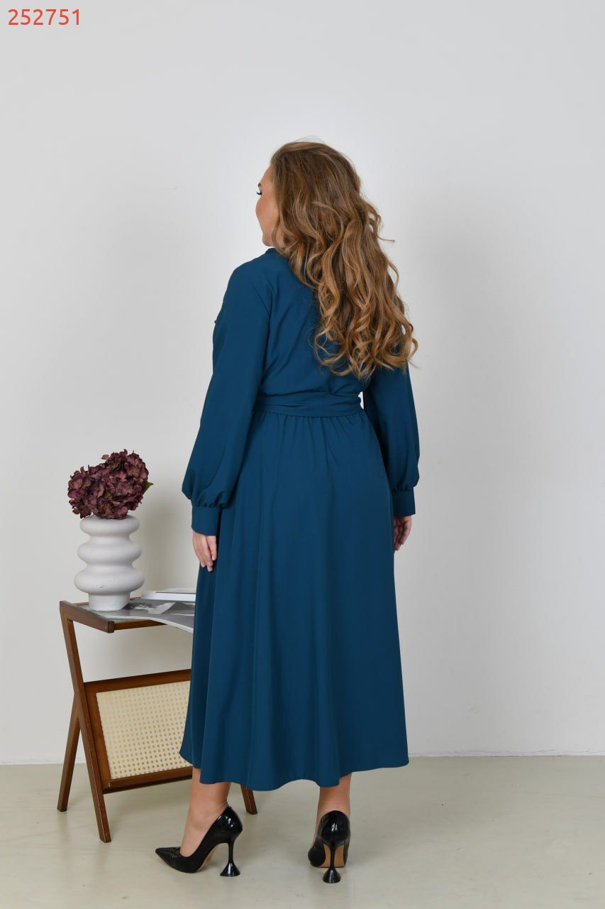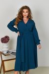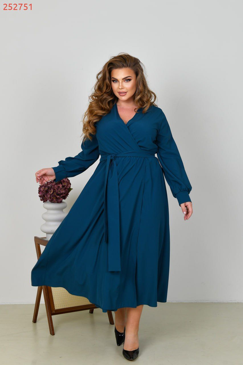 Неймовірно жіночна довга сукня у вечірньому стилі із софта (розтяжності немає). Ліф сукні та спідниця на запАх, по талії зібрана на резинку. Рукави довгі, на манжеті. Пояс із основної тканини в комплекті. Кишень, застібок немає.