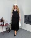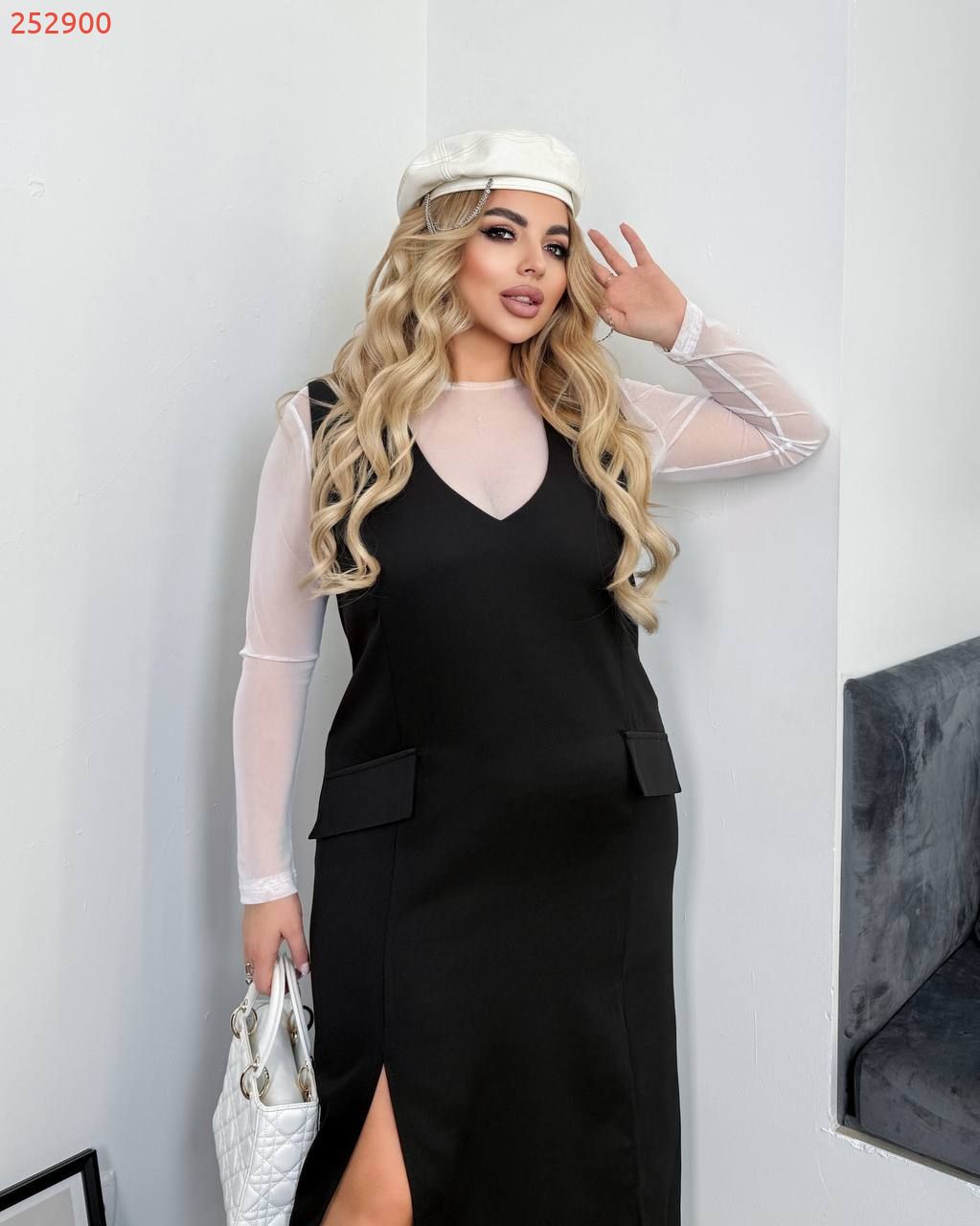 Нарядний комплект : плаття без рукавів , з боків дві кишені -імітації , спереду два розрізи вище колін, V-образний виріз; гольф з довгим рукавом.