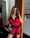 50-52 Об'єм грудей - 104 см, Об'єм талії (довжина гумки) - 82 см, Об'єм стегон - 128 см, Висота шорт - 28 см, Висота пенюара - 44 см