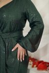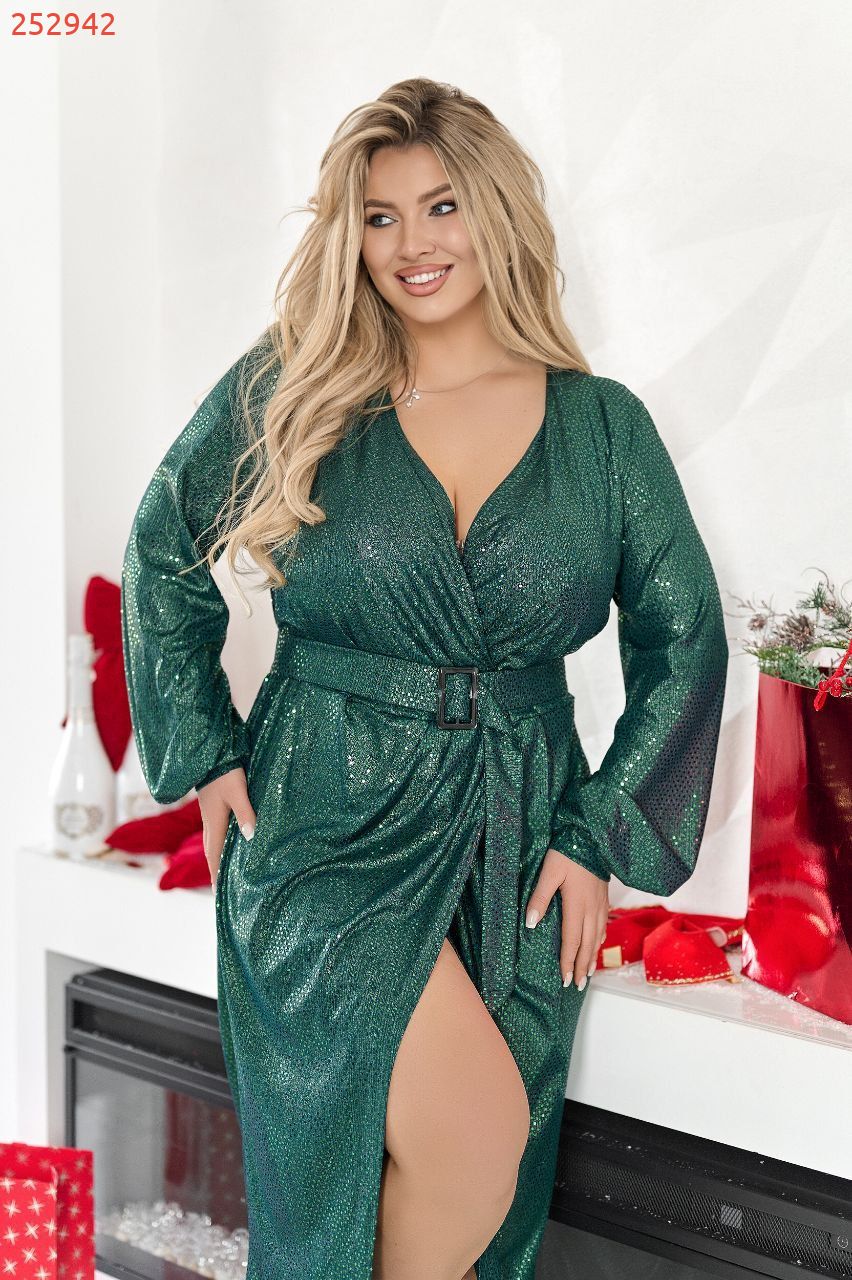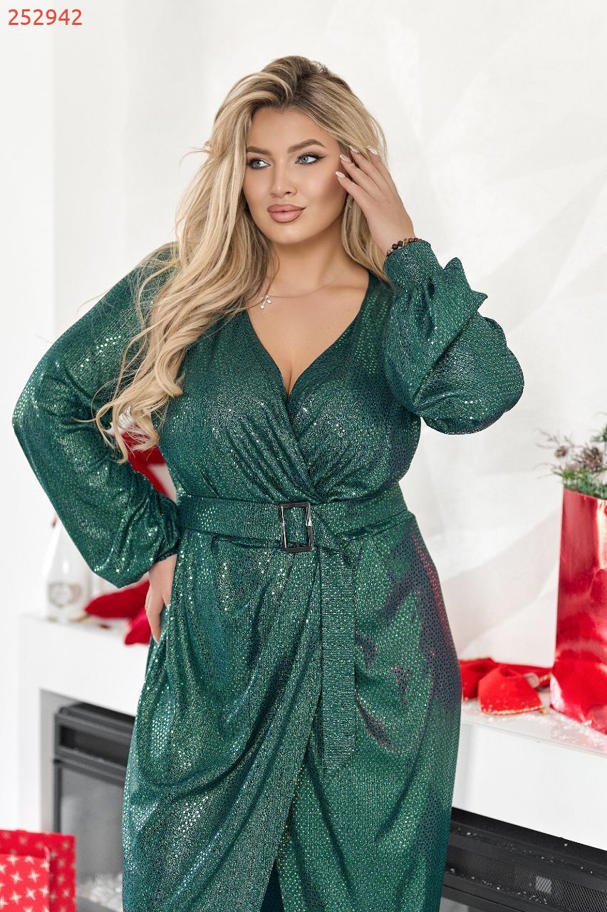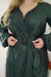 Сукня на запах з паєтками - це вишукана сукня, що створює V-подібний виріз завдяки полотнищам, що перекриваються, яке доповнене блискучими паєтками, що роблять його ідеальним для вечірніх виходів. Пасок підкреслює талію і робить гарний силует, рукава ідіуть фанатиком