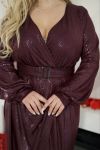 Сукня на запах з паєтками - це вишукана сукня, що створює V-подібний виріз завдяки полотнищам, що перекриваються, яке доповнене блискучими паєтками, що роблять його ідеальним для вечірніх виходів. Пасок підкреслює талію і робить гарний силует, рукава ідіуть фанатиком