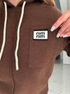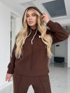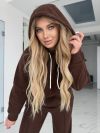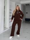 Стильний жіночий костюм у глибоких трендових відтінках– ідеальний вибір для тих, хто цінує комфорт і лаконічну елегантність. М’яка, приємна до тіла тканина забезпечує затишок у прохолодну погоду, а продуманий крій додає образу сучасності. Світлі шнурки на капюшоні створюють контрастний акцент, а акуратний логотип на грудях підкреслює брендований стиль. Широкі штани зі стрілками візуально подовжують ноги та забезпечують вільний рух.