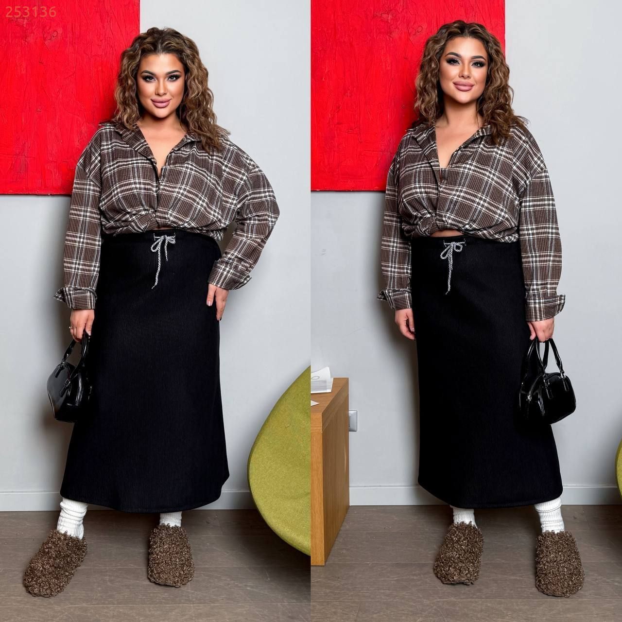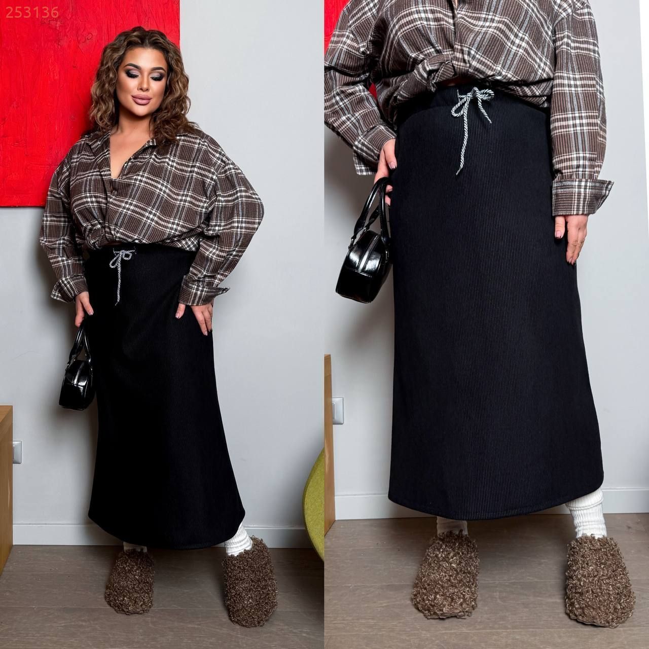 Тепла спідниця на холодну пору , покрою трапеція , талія на резинці та шнурку .
