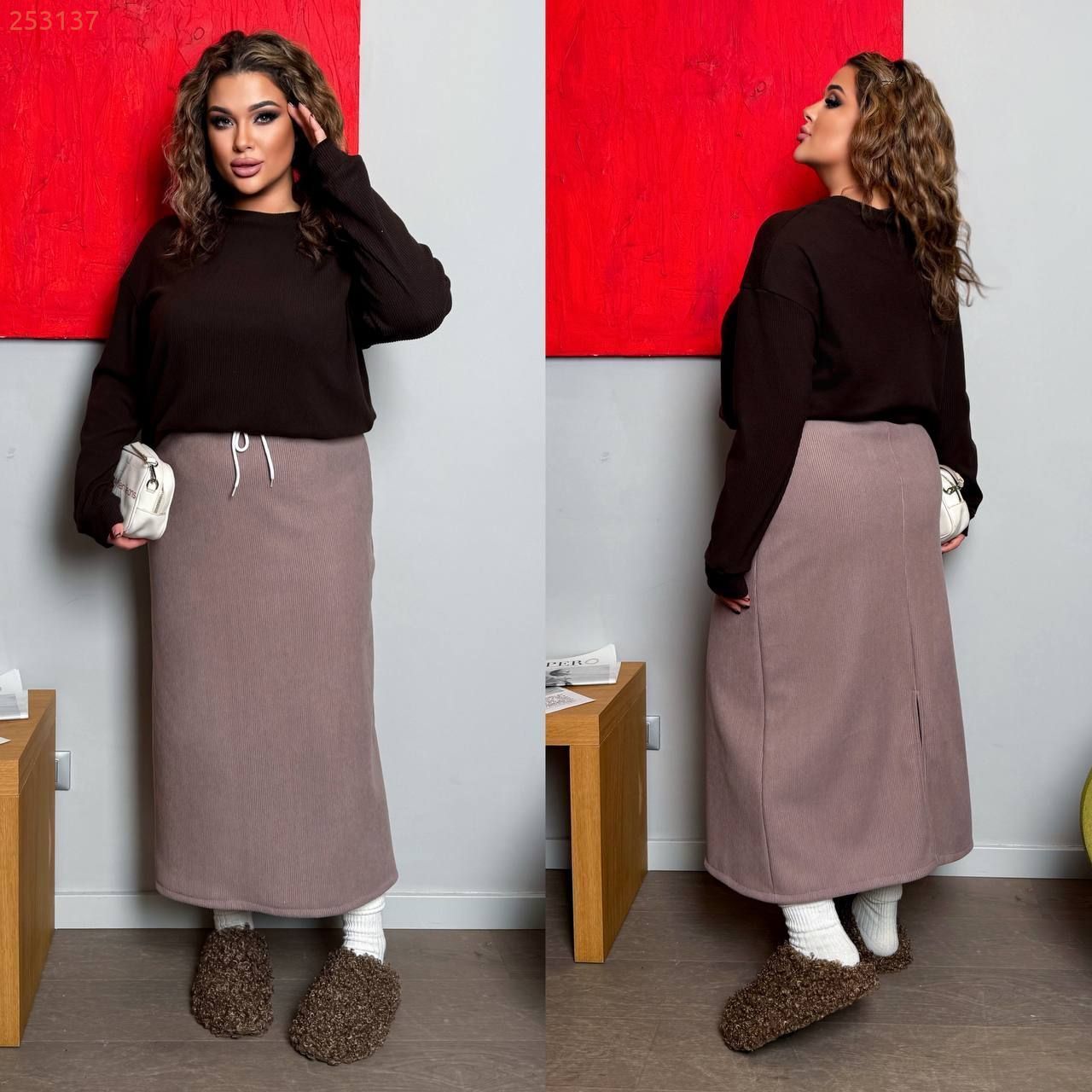 Тепла спідниця на холодну пору , покрою трапеція , талія на резинці та шнурку .