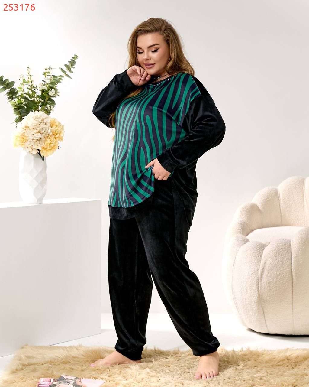 виміри виробу у спокійному стані : довжина кофти 79 см, рукав від горловини 76 см, довжина штанів 111 см, по низу манжети, мають кишені, талія на резинці
