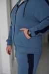 Худі прямого силуету, має зручний капюшон зі шнурками та центральну застібку-блискавку. Дві кишені кенгуру надають практичності. Низ виробу та манжети рукава на широкому трикотажному манжеті .Контрастні лампаси на рукавах і штанах роблять образ виразним та сучасним.