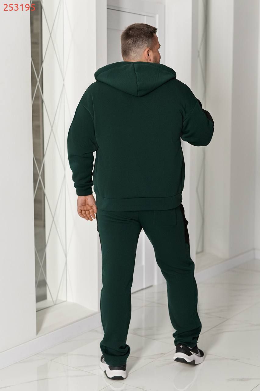 Худі прямого силуету, має зручний капюшон зі шнурками та центральну застібку-блискавку. Дві кишені кенгуру надають практичності. Низ виробу та манжети рукава на широкому трикотажному манжеті .Контрастні лампаси на рукавах і штанах роблять образ виразним та сучасним.