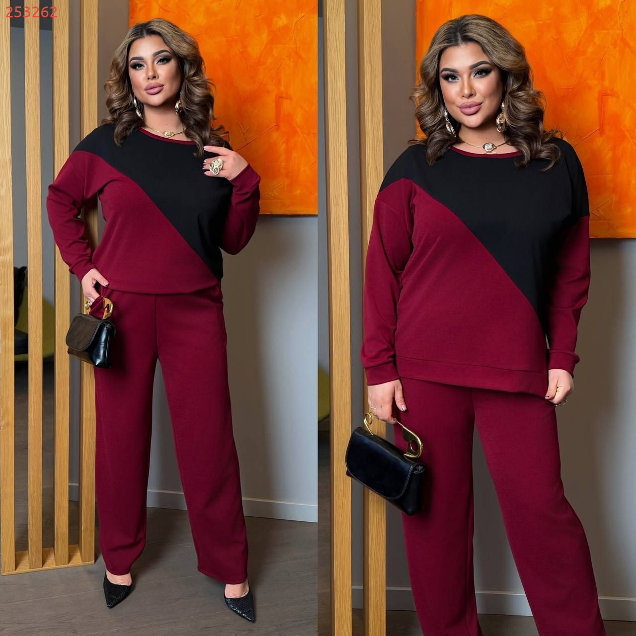 Довжина штанів : 107 см. Стильний костюм двійка . Штани з високою посадкою , пояс на гумці . Кофта прямого покрою на манжеті .