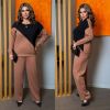 Довжина штанів : 107 см. Стильний костюм двійка . Штани з високою посадкою , пояс на гумці . Кофта прямого покрою на манжеті .
