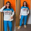 Довжина штанів : 106 см. . Штани з високою посадкою , пояс на гумці . Кофта прямого покрою з нашивкою .