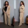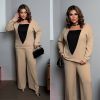 Довжина штанів : 110 см. Стильний костюм двійка . Штани з високою посадкою , пояс на гумці . Кофта прямого покрою на манжеті , з вставкою .