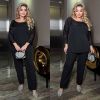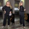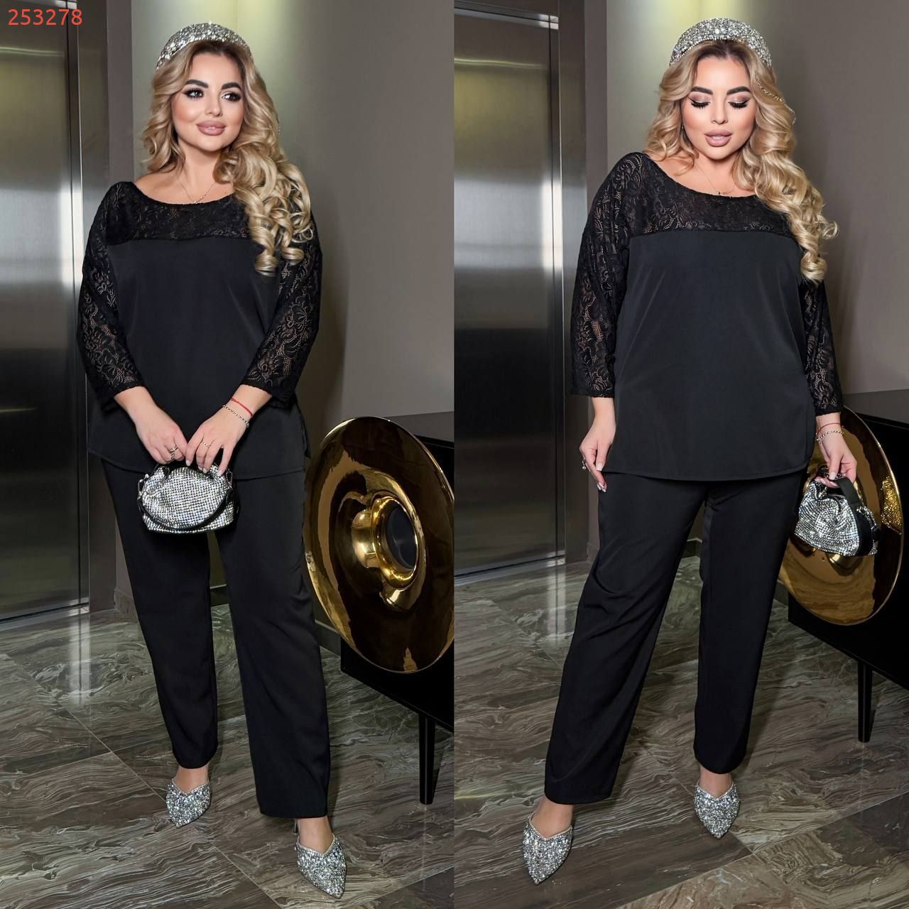 Довжина штанів : 105 см. Святковий костюм двійка . Штани з високою посадкою , пояс на гумці . Кофта прямого покрою комбінована , рукав 3/4
