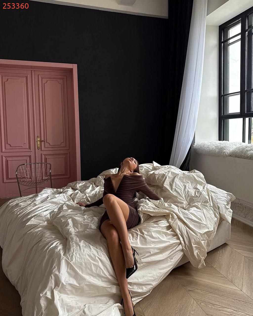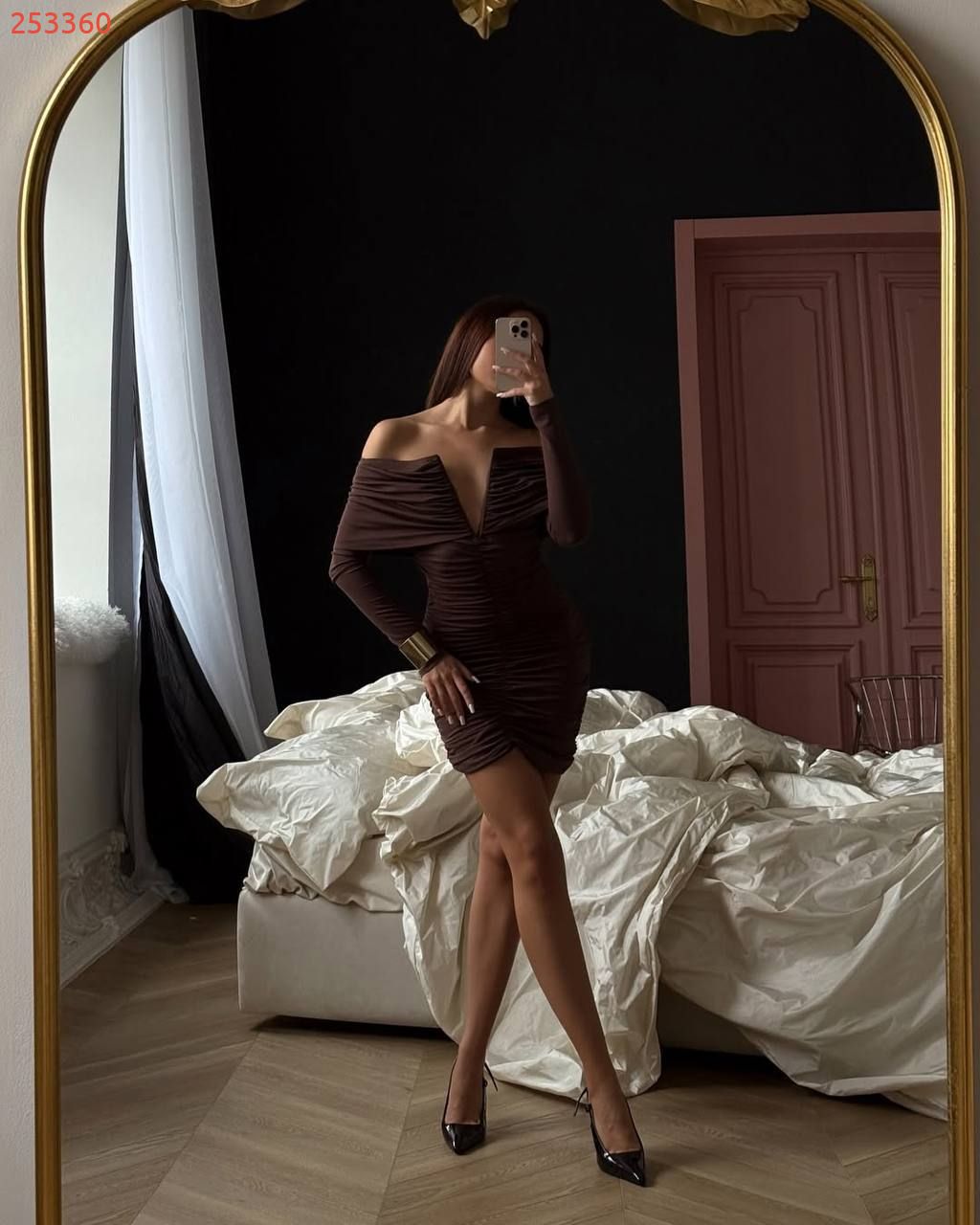 Розкішна сукня для впевнених жінок, які люблять бути в центрі уваги. Ефектна драпіровка по всій довжині та відкрите декольте створюють ідеальний силует. Особливий акцент – знімний шарф, який можна зав’язати навколо шиї або залишити вільно спадаючим для більш вишуканого образу.