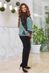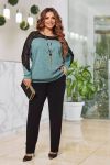 Ефектний комплект, в якому поєднується краса та якість. Комплектація з блузи та штанів. Ошатна блузка напівприлеглого силуету з ангори з елегантним мерехтінням. Горловина округлої форми. Спинка із середнім швом, що переходить у застібку на навісну петлю і гудзик.