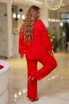 Без кишень, рукав спущений. Пояс на резинці. Цей комплект - знахідка для сучасних жінок: він однаково гарний в діловій атмосфері, на святі або в неформальній обстановці. Стиль, комфорт та бездоганний смак – все в одному образі.