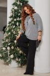Розкішний комплект складається з вільної блузи та широких штанів "палаццо". Блуза прямого силуету з суцільно кроєними рукавами "кажан". Рукави довжиною 3/4. Низ на манжетах. Штани прямі широкі на поясі з гумкою по колу. Це справді грайливо та святково!