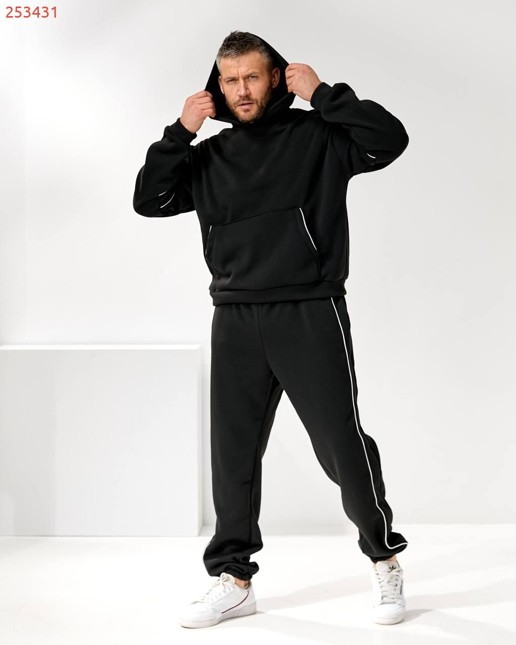 Чоловічий костюм з трьох нитки – це втілення комфорту і стилю в повсякденному одязі. М'яка тканина дбайливо зберігає тепло, дозволяючи шкірі дихати, а сучасний крій підкреслює мужність і свободу рухів. Костюм ідеально підходить як для прогулянок у прохолодну погоду, так і для домашнього затишку. Лаконічний дизайн робить його універсальним рішенням: він однаково органічно виглядає і в розслабленому, і в більш активному образі.