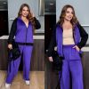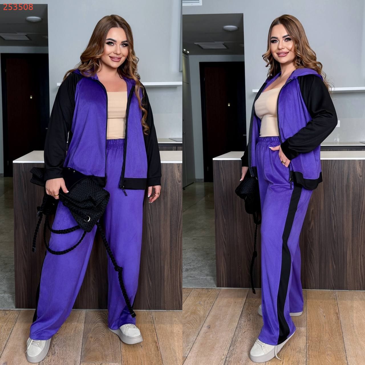 Довжина штанів : 107 см. Штани з високою посадкою , пояс на гумці , бічний ломпас . Кофта прямого покрою на манжеті , на блискавці , з капюшоном