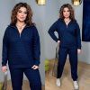 Довжина штанів : 106 . Штани з високою посадкою , пояс на гумці , низ на манжеті . Кофта прямого покрою на манжеті , з коміром на блискавці .