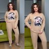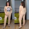 Довжина штанів : 106 см. . Штани з високою посадкою , пояс на гумці . Кофта прямого покрою з нашивкою .