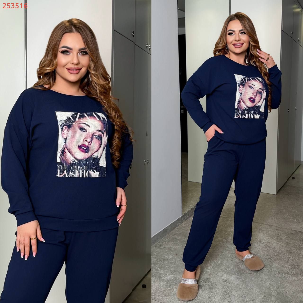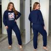 Довжина штанів : 106 см. . Штани з високою посадкою , пояс на гумці . Кофта прямого покрою з нашивкою .