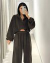 Костюм, який стане незамінним в твоєму гардеробіІ підійде для будь-який параметрів.Базовий, стильний та комфортний Штани та кофта на затяжках внизу.