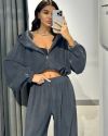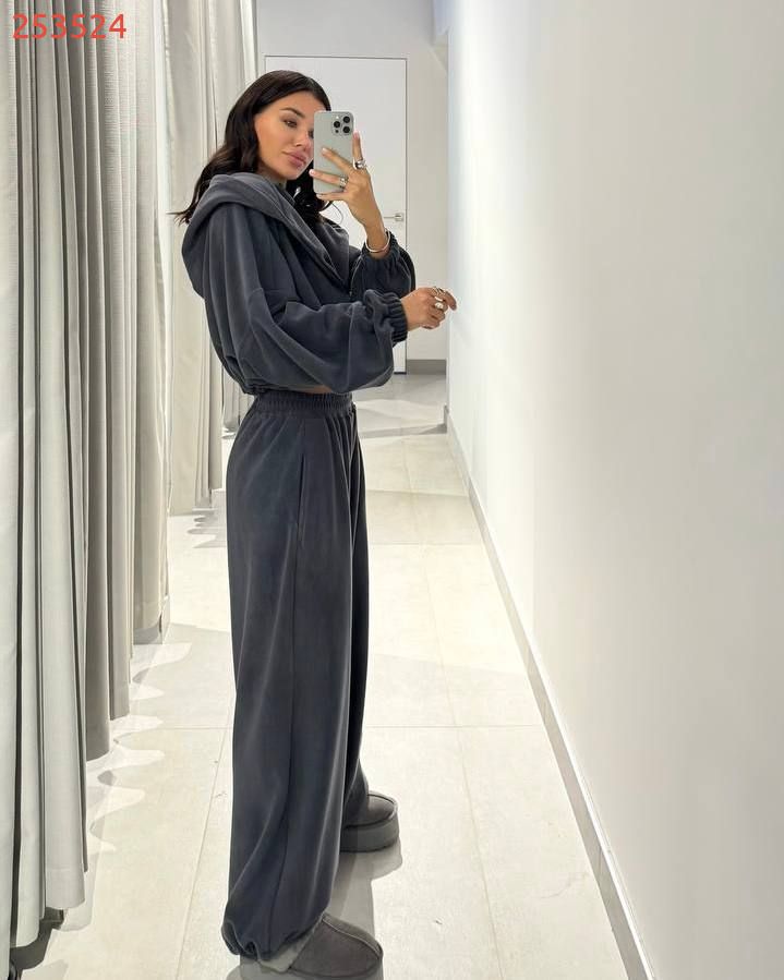 Костюм, який стане незамінним в твоєму гардеробіІ підійде для будь-який параметрів.Базовий, стильний та комфортний Штани та кофта на затяжках внизу.