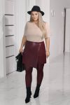 Стильна спідниця-шорти – ідеальне поєднання жіночності та комфорту. Силует прилеглий по талії та стегнах, високої посадки . Пояс суцільнокроєний без резинки. Потайна застібка - молнія спереду під асиметричною деталлю і на ґудзик спереду збоку .
