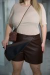 Стильна спідниця-шорти – ідеальне поєднання жіночності та комфорту. Силует прилеглий по талії та стегнах, високої посадки . Пояс суцільнокроєний без резинки. Потайна застібка - молнія спереду під асиметричною деталлю і на ґудзик спереду збоку .