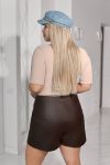 Виріб поєднує вигляд спідниці спереду та шорти ззаду. Передня частина виконана у вигляді асиметричної накладної деталі (імітація запаху), що перекриває класичні шорти .