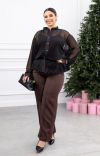 Вишуканий костюм-трійка для бездоганного образу – однаково доречний у офісі та на особливих подіях. Вільна блуза з еластичною посадкою понизу м’яко підкреслює силует, делікатна вишивка на рукавах і по низу додає вишуканого акценту. Під блузу – м’який еластичний топ для комфорту і впевненості протягом дня. Штани середньої посадки з резинкою ззаду на поясі забезпечують легкість рухів і акуратну посадку. Комплект легко стилізувати у мінімалістичній або святковій естетиці.