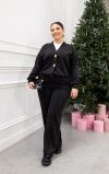 Вишуканий костюм-двійка для комфортних повсякденних образів. Кофта з італійського трикотажу – м’яка, еластична та приємна до тіла, застібається на трендові декоративні ґудзики й додає образу вишуканості. Штани середньої посадки на еластичному поясі забезпечують ідеальну посадку та свободу рухів, а шовні бокові кишені роблять модель ще практичнішою.