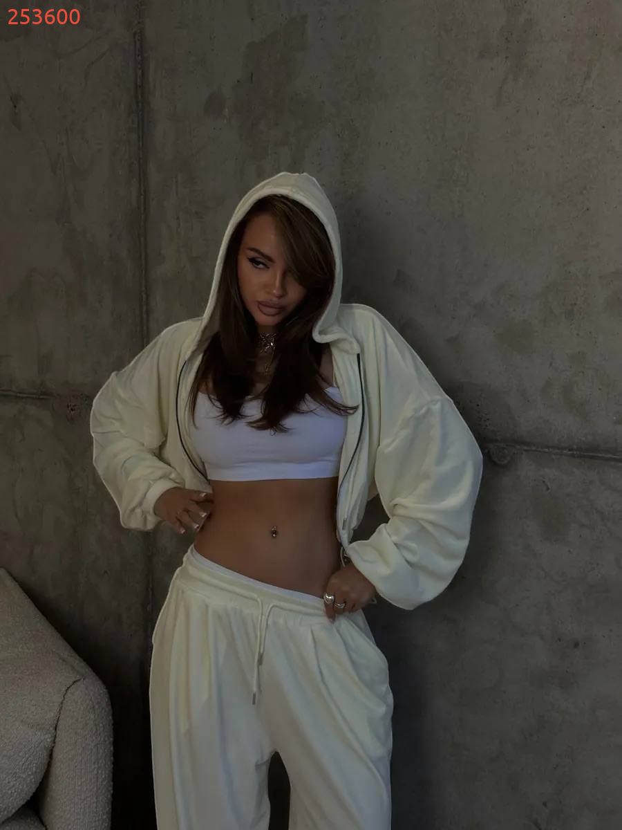 М'який і приємний до тіла костюм з велюру точно стане вашим улюбленцем, завдяки своїй універсальності.Кожну частину костюма можна носити окремо На штанах вшита біла резинка.