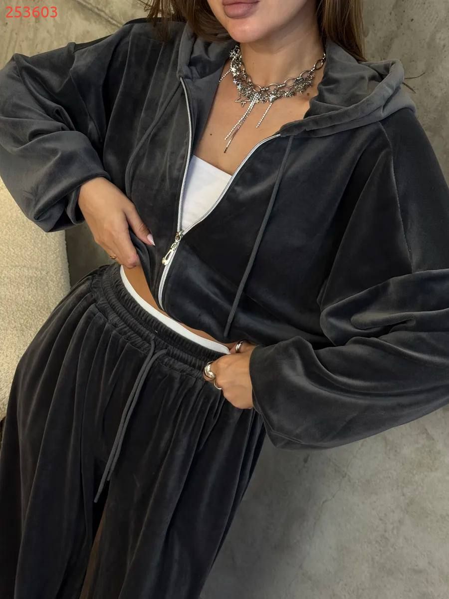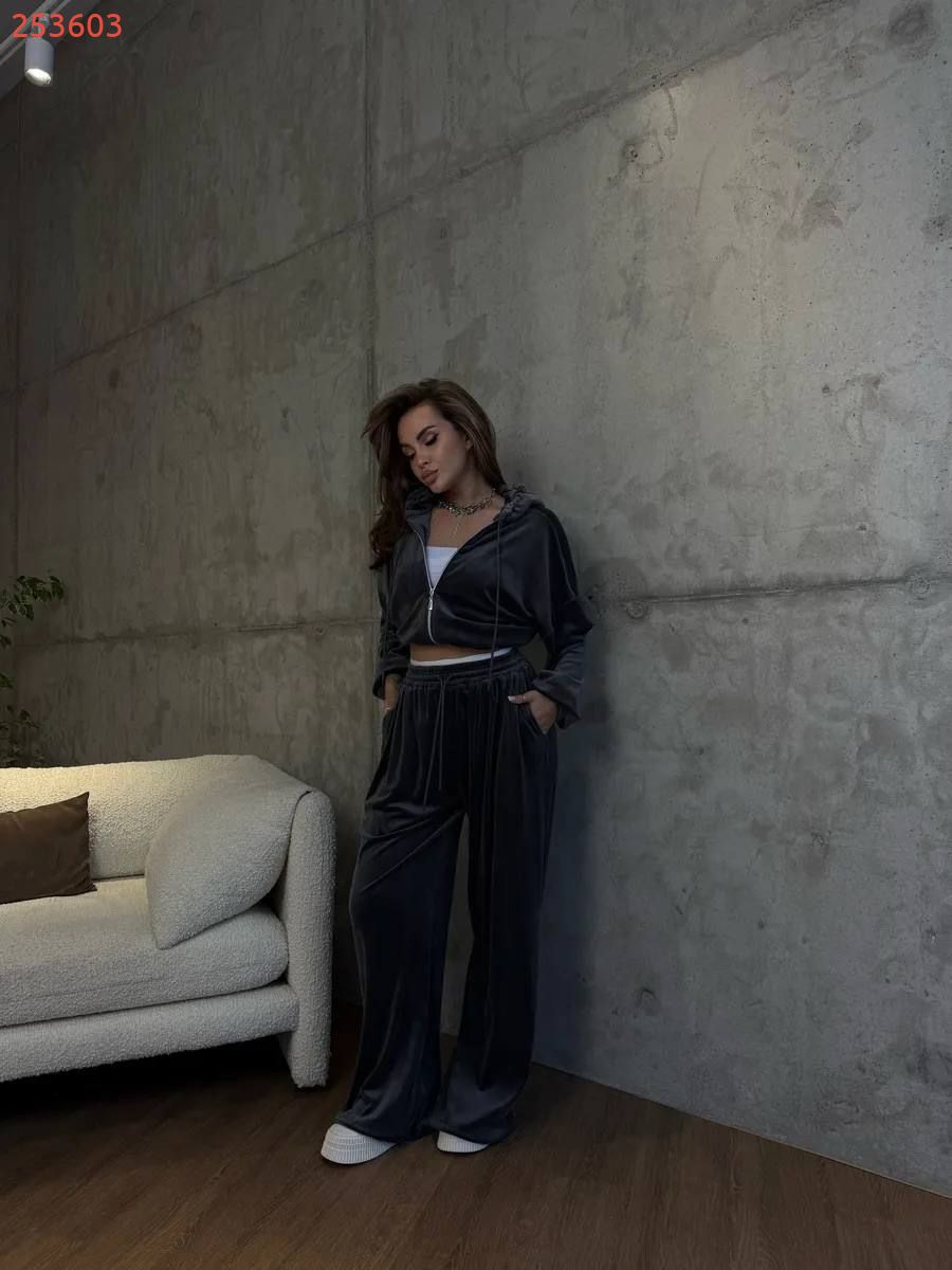 М'який і приємний до тіла костюм з велюру точно стане вашим улюбленцем, завдяки своїй універсальності.Кожну частину костюма можна носити окремо На штанах вшита біла резинка.