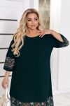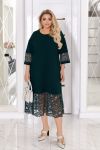 Сукня напівприлеглого силуету розширена до низу, виконана з крепу з пришивним декором. Виріз горловини круглий, по спинці застібка на одну петлю навісну і гудзик. По низу сукні пришитий прибраний волан. Сукня ідеально підійде для будь-якої урочистої події, залишаючись модною та актуальною незалежно від сезону та трендів.