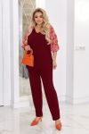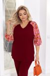 Створити ошатний образ із брюками можливо разом з нашою новинкою! Комплект складається з блузи та штанів. Блуза прямого силуету. Рукава реглан з прозорої тканини з принтом, що контрастно поєднується з основною тканиною виробу. Низ рукава оброблений на резинку. Горловина V-подібної форми. У бічних швах розрізи блузки. Перед нагрудними виточками. Штани сідають по фігурі, середня посадка, з кишенями. Відчуйте себе впевненою та стильною у будь-якій ситуації!