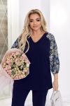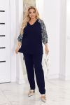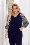 Створити ошатний образ із брюками можливо разом з нашою новинкою! Комплект складається з блузи та штанів. Блуза прямого силуету. Рукава реглан з прозорої тканини з принтом, що контрастно поєднується з основною тканиною виробу. Низ рукава оброблений на резинку. Горловина V-подібної форми. У бічних швах розрізи блузки. Перед нагрудними виточками. Штани сідають по фігурі, середня посадка, з кишенями. Відчуйте себе впевненою та стильною у будь-якій ситуації!